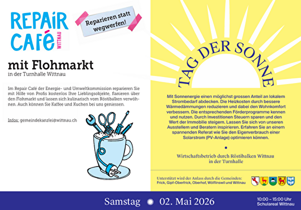 Der Tag der Sonne wird jeweils zusammen für die Gemeinden Frick, Gipf-Oberfrick, Wittnau, Wölflinswil und Oberhof durchgeführt.